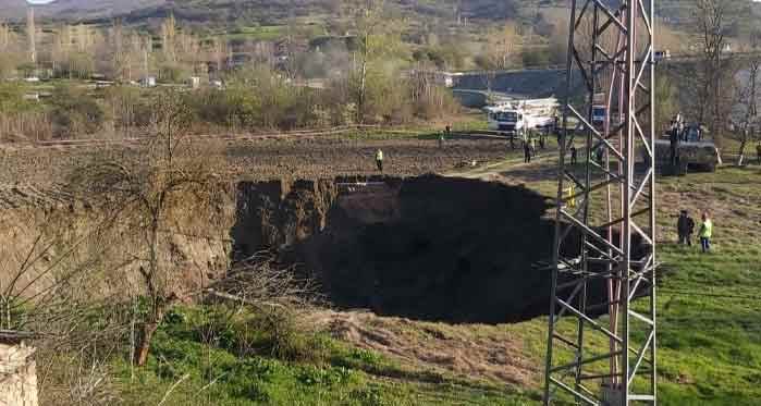 Bilecik’te Yüksek Hızlı Tren (YHT) hattında yer alan, ancak henüz kullanılamayan bir tüneldeki çalışmalar sırasında yaşanan çökme sonucu 40 metre derinliğinde 80 metre çapında göçük meydana geldi. Bu hattın daha inşaat aşamasında olması olası bir felaketin önüne geçti.
