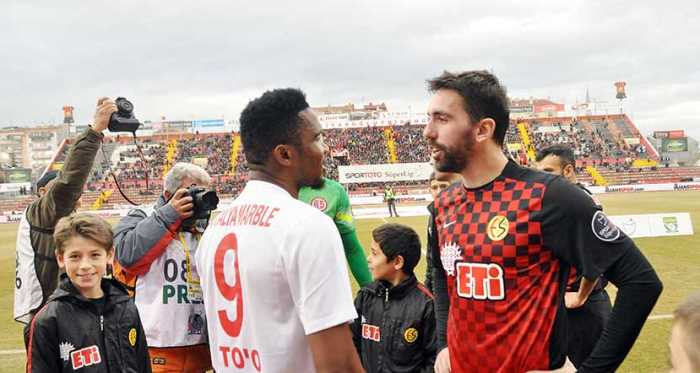 Eskişehirsporlu savunma oyuncu Figueras ile Antalyaspor’un yıldızı Samuel Eto’o geçtiğimiz