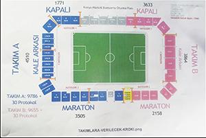 Eskişehirspor taraftarlarına (Takım A) ayrılan bölüm 9786 kişilik olup, Galatasaray taraftarlarına (Takım B) ayrılan bölüm 9655 kişiliktir.
