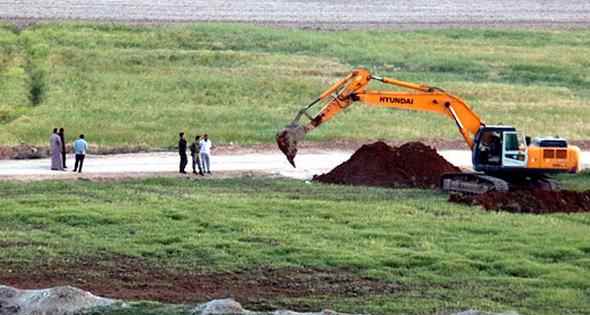 Akçakale ilçesinde Suriye sınır hattında askeri zırhlı araçlar için mevziler kazıldı.
