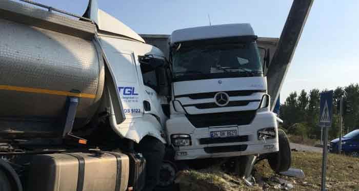 Olay, Bilecik-Eskişehir karayolu Pazaryeri kavşağında meydana geldi. Bilecik istikametinden Eskişehir yönüne seyir eden İrfan A. yönetimindeki 34 DB 5122 plakalı tankerin freni patladı. Tanker sürücüsü, kırmızı ışıkta bekleyen otomobile çarpmamak için direksiyonu kırarak aynı yönde ilerleyen Halil A. idaresindeki 34 GH 8621 plakalı tıra yandan çarptı. Çarpmanın etkisiyle tankerde sıkışan sürücü İrfan A., olay yerine gelen Pazaryeri Belediyesi itfaiye ekipleri tarafından sıkıştığı yerden çıkarıldı. Tankerin çarptığı tırın sürücüsü de refüjde bulunan yön belirleme tabelası ile tır arasında sıkıştı. Yaralı sürücüler, olay yerine gelen 112 Acil Servis ekipleri tarafından Bilecik Devlet Hastanesine kaldırıldı. Trafiğe kapanan yol araçların kaldırılmasının ardından yeniden trafiğe açıldı.
