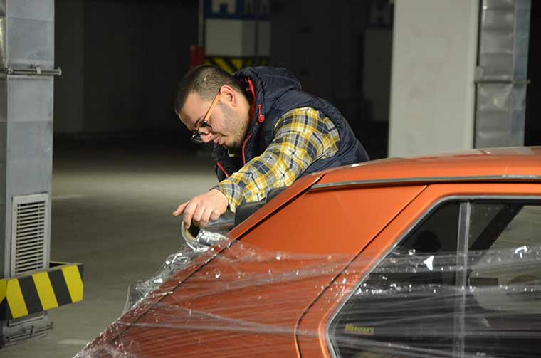Eskişehir'de yaşayan Kerem Doğan isimli vatandaş, iz kalmaması için otomobilini her park ettiğinde streç film ile sarıyor.