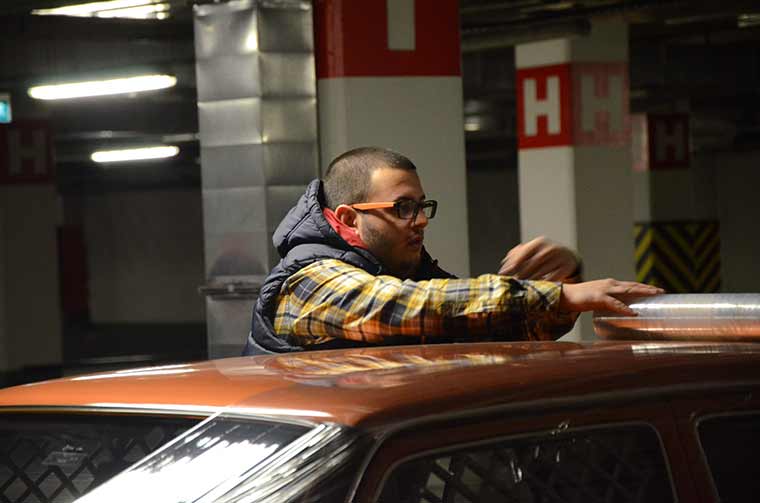Eskişehir'de yaşayan Kerem Doğan isimli vatandaş, iz kalmaması için otomobilini her park ettiğinde streç film ile sarıyor.