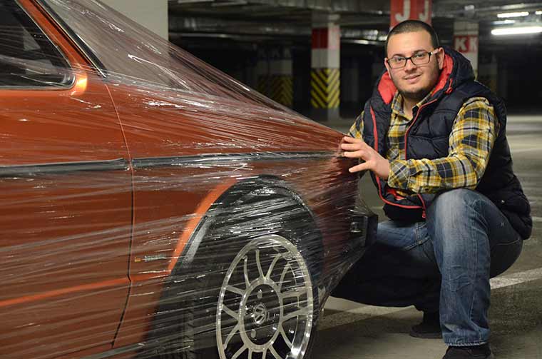 Eskişehir'de yaşayan Kerem Doğan isimli vatandaş, iz kalmaması için otomobilini her park ettiğinde streç film ile sarıyor.