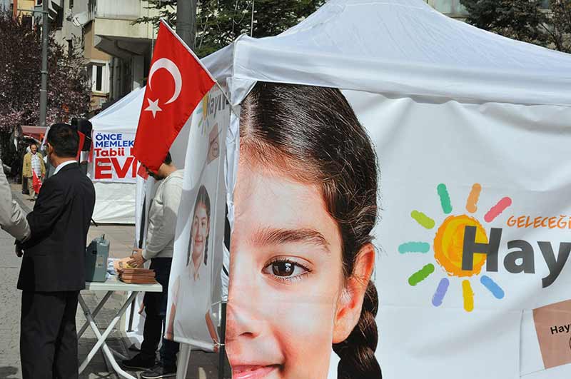 Eskişehir'de halk oylamasına yönelik kampanyalarını aynı caddede beş metre arayla kurdukları çadırda yürüten farklı görüşteki siyasi partiler, vatandaşlara anayasa değişikliğine ilişkin görüşlerini aktarıyor.