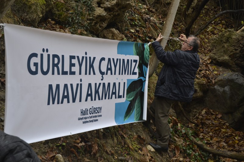 Havanın soğuk ve yağışlı olmasına aldırmadan 'Kışın ben giriyorum, yazın siz girebilin' diyerek kendisini buz gibi suya bırakan Gürsoy, Gürleyik Çayı üzerinde yapılan kamp, piknik ve yürüyüş gibi aktiviteler sonucu zarar gören doğal ortam için ilgililere seslendi.