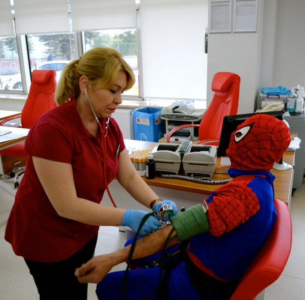 Yüksek binaların dış cephe temizliğini yaparak geçimini sağlayan "Örümcek Adam" lakaplı Tamer Uysal, kan bağışının önemine dikkati çekmek için çatısına tırmandığı Türk Kızılay Eskişehir Bölge Kan Merkezi'ne pencereden girip kan verdi.