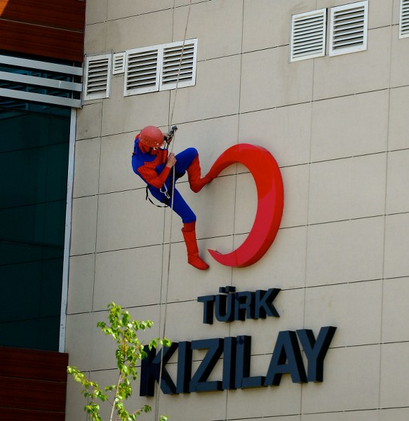 Yüksek binaların dış cephe temizliğini yaparak geçimini sağlayan "Örümcek Adam" lakaplı Tamer Uysal, kan bağışının önemine dikkati çekmek için çatısına tırmandığı Türk Kızılay Eskişehir Bölge Kan Merkezi'ne pencereden girip kan verdi.