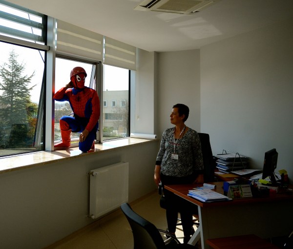 Yüksek binaların dış cephe temizliğini yaparak geçimini sağlayan "Örümcek Adam" lakaplı Tamer Uysal, kan bağışının önemine dikkati çekmek için çatısına tırmandığı Türk Kızılay Eskişehir Bölge Kan Merkezi'ne pencereden girip kan verdi.