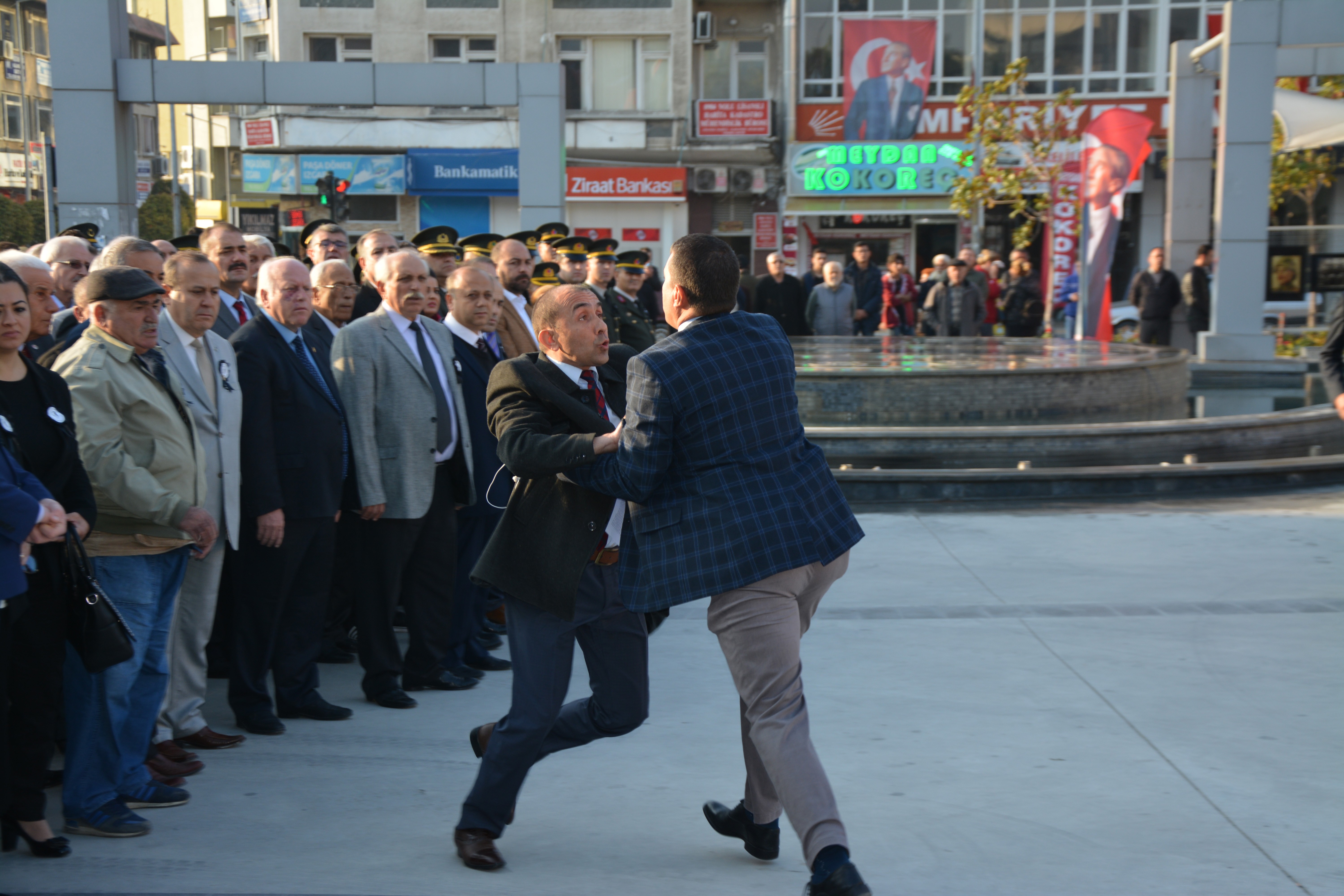 Aydın'ın Söke ilçesinde 10 Kasım Atatürk'ü anma etkinliği sırasında gerginlik yaşandı.