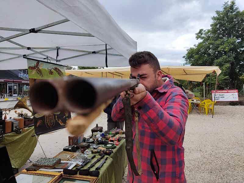 Uşak’ta yaşayan antikacı İbrahim Efe, Eskişehir Antika Pazarı’nda tezgah açarak nostalji severlerle buluştu. Antikacı Efe’nin tezgahında, eski dönümlere ait birçok ürün yer alırken, en dikkat çekenler ise tarihi tüfek oldu.