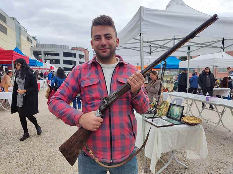 İngiliz yapımı olan ve 150 yıllık olduğu belirtilen tüfek, pazarı ziyaret eden vatandaşların ilgi odağı oldu. Doldurma mekanizmasına sahip olan antika tüfek, çakmaklı sistemle ateşlenerek patlatma usulüne dayanıyor.