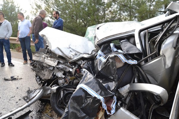 2 TIR arasında kalan otomobil hurda yığınına dönerken, sürücüsü araç içinde sıkışarak olay yerinde hayatını kaybetti.
