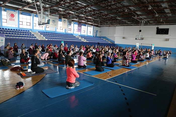 250 kadın hep birlikte yoga yaptı