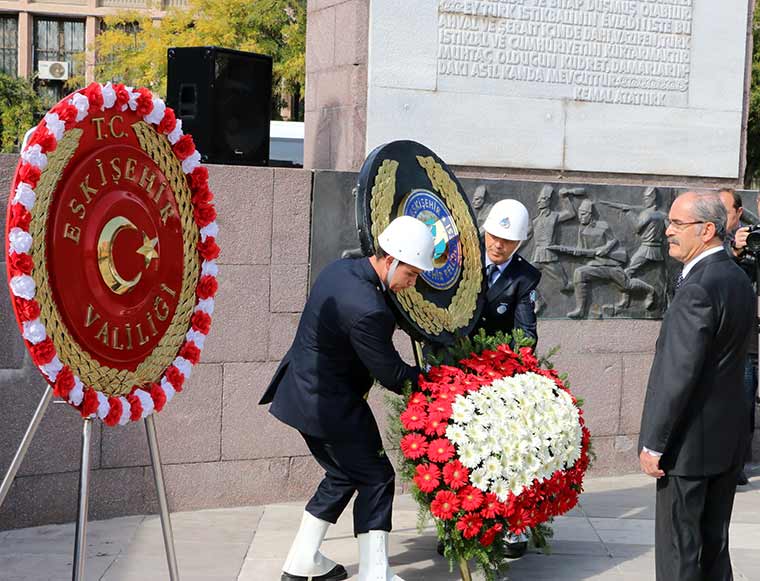 Eskişehir'de 29 Ekim Cumhuriyet Bayramı kutlamaları kapsamında çelenk sunma töreni düzenlendi.