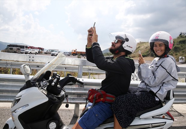 İstanbul Boğazı'na inşa edilen "dünyanın en geniş" köprüsü Yavuz Sultan Selim Köprüsü'nden araç geçişleri başladı. Bazı vatandaşlar köprü üstünde, hatıra fotoğrafı çektirdi.
