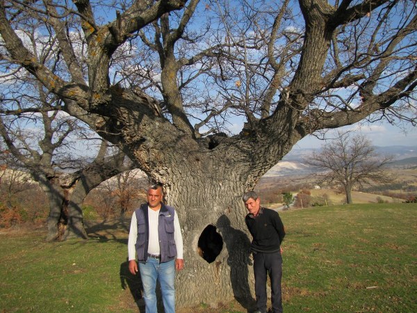 Kütahya'nın Hisarcık ilçesine bağlı Bey köyünde yaklaşık 400 yıllık gövdesi boş meşe ağacı vatandaşların ilgi odağı haline geldi.