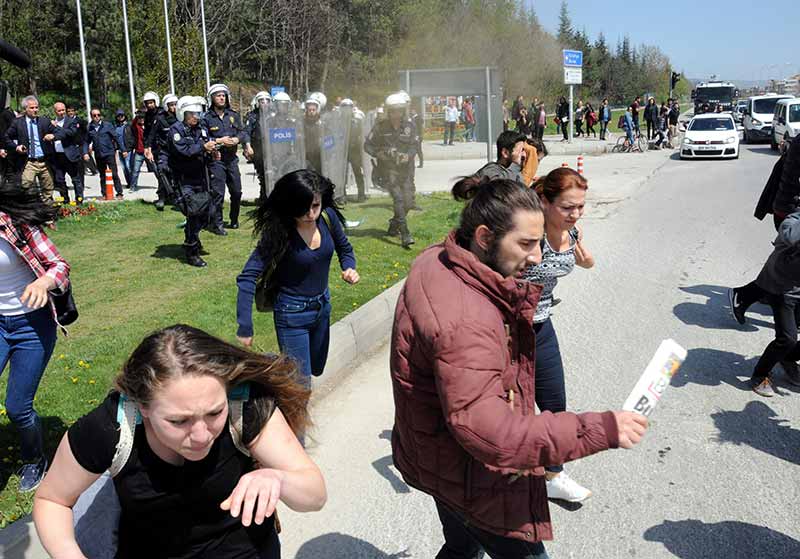 Eskişehir Anadolu Üniversitesi Yunus Emre Yerleşkesi'nde bir grup öğrenciyle özel güvenlik görevlileri arasında kavga çıktı. Çevik kuvvet polislerinin müdahale ettiği olayda, 3'ü özel güvenlik görevlisi 9 kişi yaralandı.