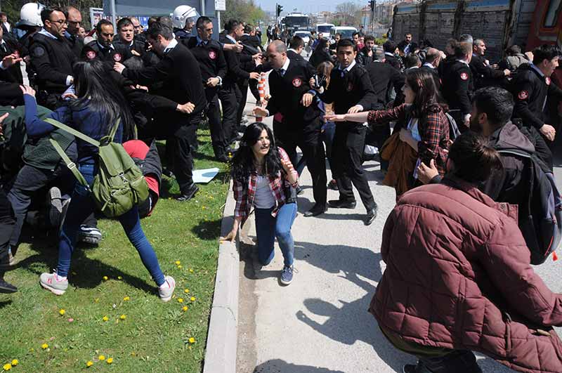 Eskişehir Anadolu Üniversitesi Yunus Emre Yerleşkesi'nde bir grup öğrenciyle özel güvenlik görevlileri arasında kavga çıktı. Çevik kuvvet polislerinin müdahale ettiği olayda, 3'ü özel güvenlik görevlisi 9 kişi yaralandı.