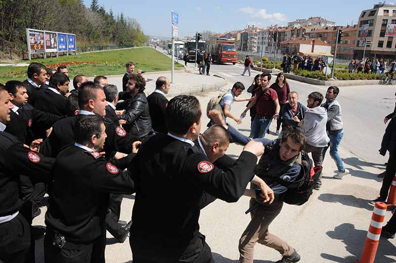 Eskişehir Anadolu Üniversitesi Yunus Emre Yerleşkesi'nde bir grup öğrenciyle özel güvenlik görevlileri arasında kavga çıktı. Çevik kuvvet polislerinin müdahale ettiği olayda, 3'ü özel güvenlik görevlisi 9 kişi yaralandı.