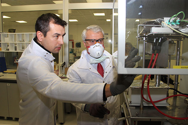 Anadolu Üniversitesi Sivil Havacılık Araştırma ve Uygulama Merkezi (SHAUM)’nde bulunan Metal Dışı Malzemeler Laboratuvarı’nda yerli uçak yapım çalışmalarına destek olunurken, uçaklarda yolcuların ve personelin can ve mal güvenliğinin sağlanması amacıyla yanmaz uçak koltuğu kumaşı çalışmaları sürdürülüyor.