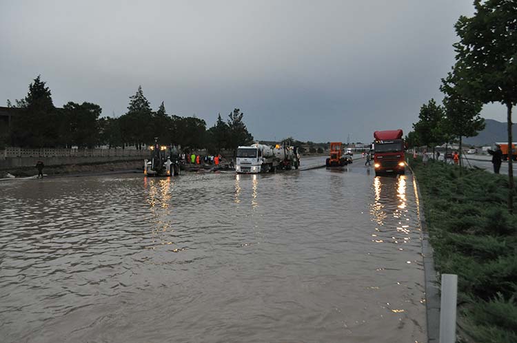 Afyon-Denizli yolunu sel vurdu