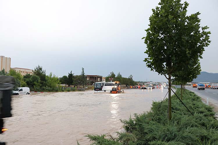 Afyon-Denizli yolunu sel vurdu