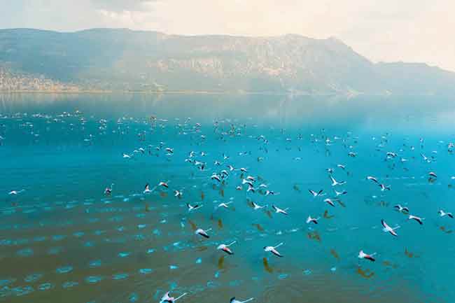 Afyonkarahisar’ın Dazkırı ve Başmakçı ilçe sınırları arasında kalan Acıgöl üzerinde drone kamera ile görüntülenen flamingolar görenleri büyüledi.