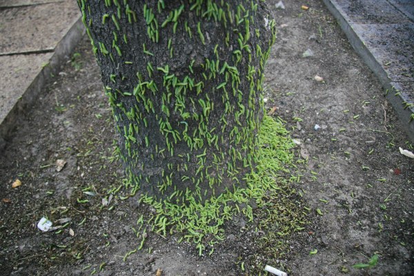 Denizli’de cadde üzerindeki kaldırımları ve ağaçları yeşil renkli binlerce küçük kurt istila etti. Ağaçlardan yayaların üzerine düşen kurtlar vatandaşları ürkütürken, bazı vatandaşlar kurtların koruma altına alınmasını bazıları ise temizlenmesini istiyor.