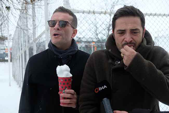 Ahmet Kural ile Murat Cemcir'in Eskişehir'de kartopu keyfi