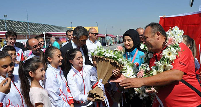 Samsun'da düzenlenen 2017 İşitme Engelliler Olimpiyatları'nda altın madalya kazanan milli karateci Gamze Keresteci, memleketi Eskişehir'de törenle karşılandı.