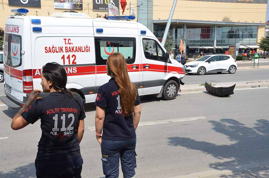 Eskişehir’de yoldan çıkan bir ambulansın elektrik direğine çarpması sonucu trafik kazası meydana geldi.