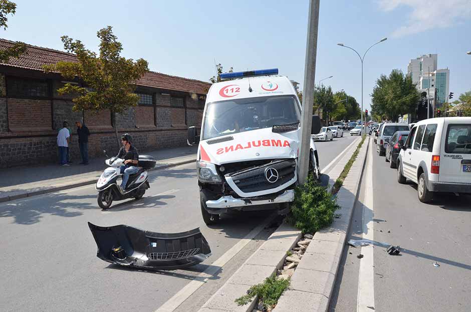 Kaynak: Ambulans yoldan çıktı direğe çarptı