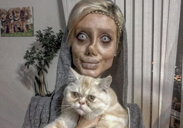 İranlı Sahar Tabar, Angelina Jolie'ye benzemek için 50’den fazla estetik ameliyat geçirdi. 19 yaşındaki genç kız bu haliyle ünlü animasyon filmi karakteri Ölü Gelin'e benzetildi