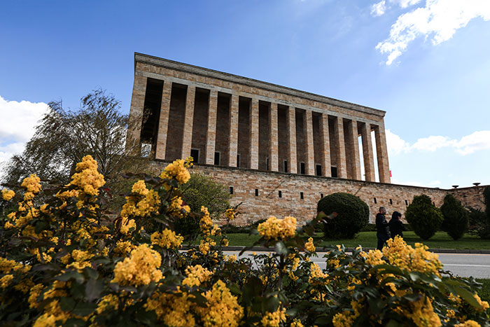 Türkiye Cumhuriyeti'nin kurucusu Mustafa Kemal Atatürk'ün ebedi istirahatgahı Anıtkabir, çevresinde bulunan ağaçların ilkbahar mevsiminde çiçek açmasıyla farklı bir güzelliğe büründü.