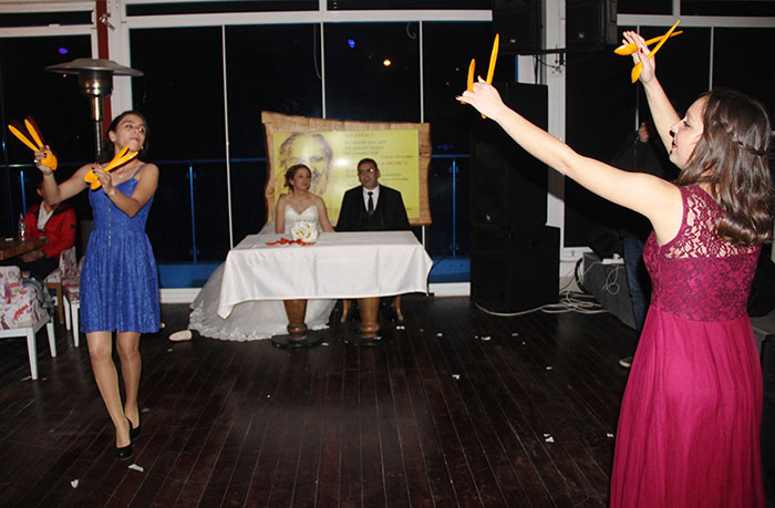 25 yıl önce maddi imkansızlıklardan dolayı düğün yapamayan çift, gelinlik ve damatlık giyerek çocukları ile birlikte Muğla’nın Bodrum ilçesinde düğün yaptı. Kız istemeden, kına gecesine tüm örf ve adetlere göre yapılan düğünün en ilginç olayı ise çiftin küçük kızlarının, annesini babasına Allah'ın emri Peygamber'in kavliyle ablasından istemesi oldu.