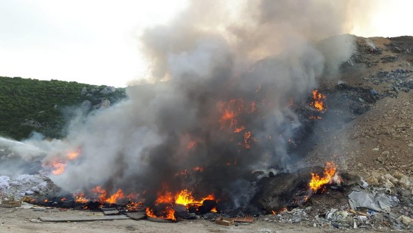 Bilecik'te çöplük alanda çıkan yangında bir köpek, alevlerin arasında kalan yavrusunu ağzında taşıyarak kurtarırken, göçük altında kalan diğer yavru köpeği de belediye çalışanları kurtardı.