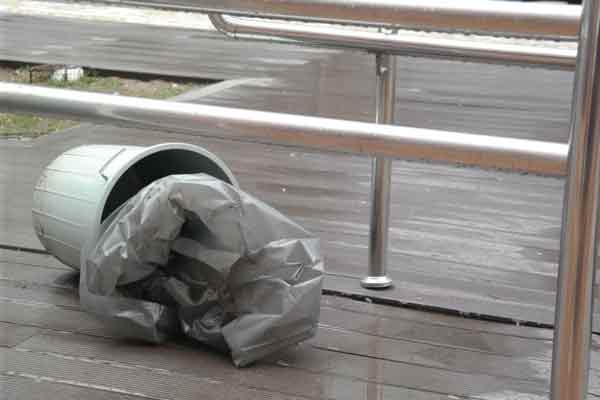 ...sokak ve caddelerde bulunan çöp kutuları, dubalar, bisikletler ve benzeri birçok malzemeyi çevreye saçtığı görüldü.