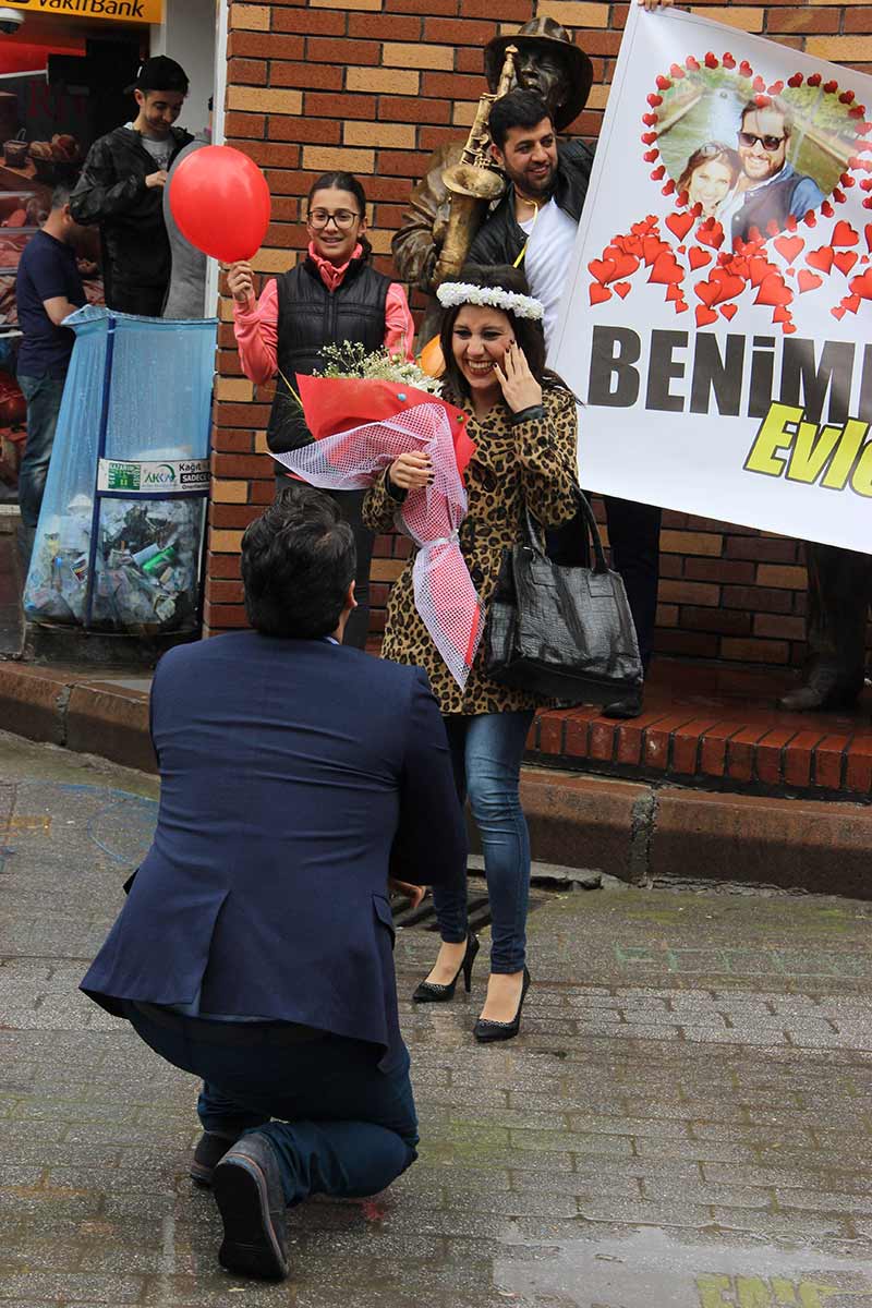 Eskişehir’de görev yapan bir öğretmen, uzun yıllardır birlikte olduğu kız arkadaşına yağmur altında evlilik teklifi yaptı.