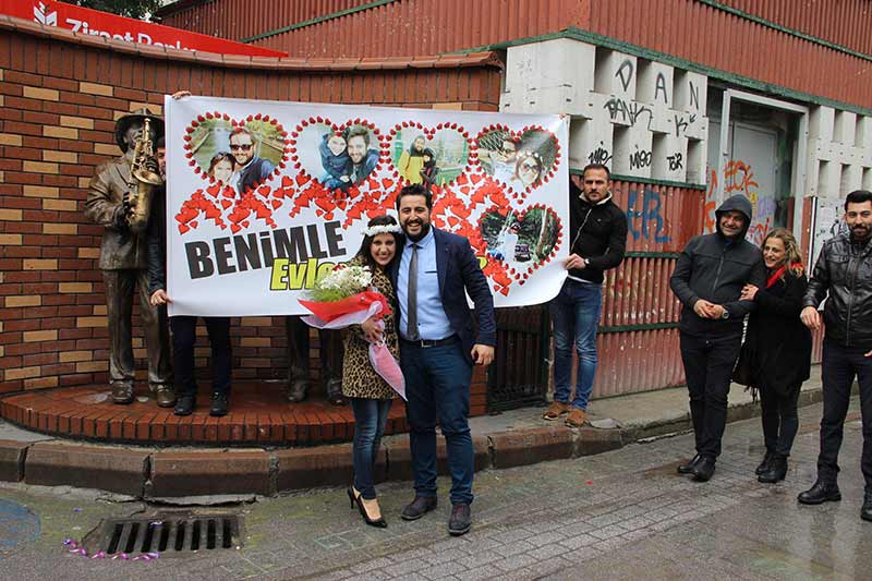Eskişehir’de görev yapan bir öğretmen, uzun yıllardır birlikte olduğu kız arkadaşına yağmur altında evlilik teklifi yaptı.