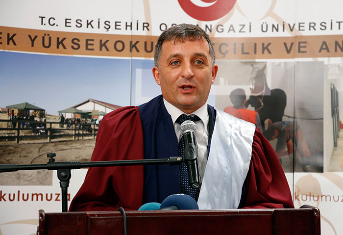 Eskişehir Osmangazi Üniversitesi (ESOGÜ) Mahmudiye Meslek Yüksekokulu Atçılık ve Antrenörlüğü Bölümündeki öğrenciler, atların üstünde kep atarak mezun oldu.