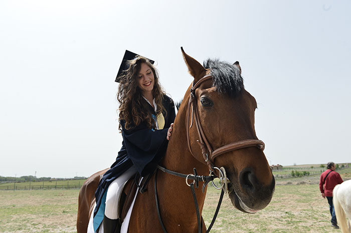 Eskişehir Osmangazi Üniversitesi (ESOGÜ) Mahmudiye Meslek Yüksekokulu Atçılık ve Antrenörlüğü Bölümündeki öğrenciler, atların üstünde kep atarak mezun oldu.