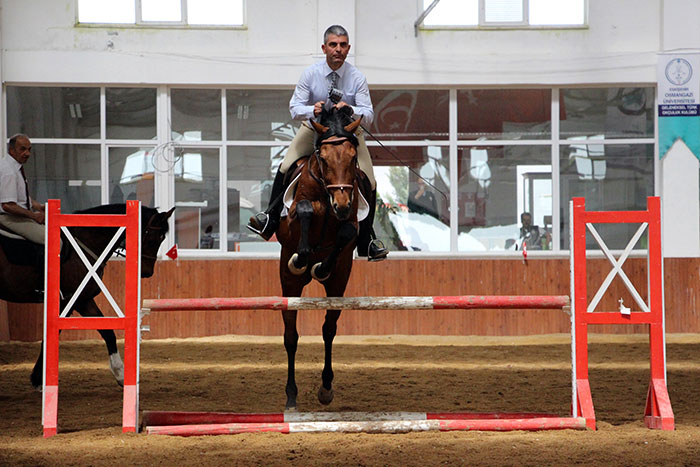 Eskişehir Osmangazi Üniversitesi (ESOGÜ) Mahmudiye Meslek Yüksekokulu Atçılık ve Antrenörlüğü Bölümündeki öğrenciler, atların üstünde kep atarak mezun oldu.