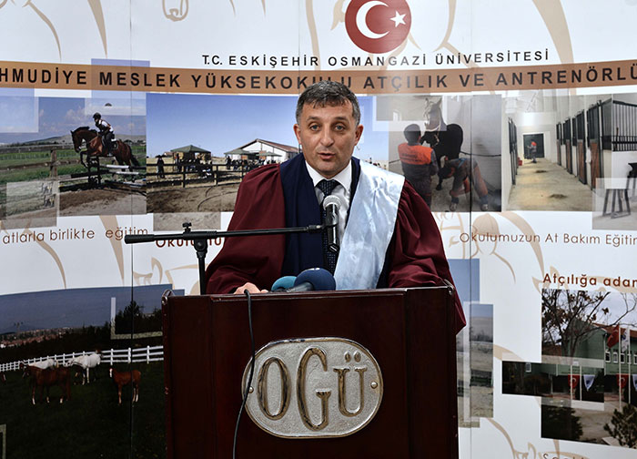 Eskişehir Osmangazi Üniversitesi (ESOGÜ) Mahmudiye Meslek Yüksekokulu Atçılık ve Antrenörlüğü Bölümündeki öğrenciler, atların üstünde kep atarak mezun oldu.