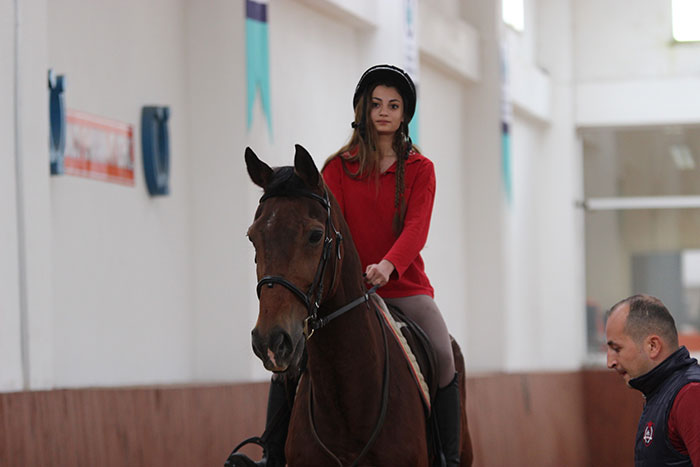 Eskişehir Osmangazi Üniversitesi (ESOGÜ) Atçılık Meslek Yüksekokulunda eğitim gören kız öğrenciler, atlara adeta bebek gibi bakıyor.