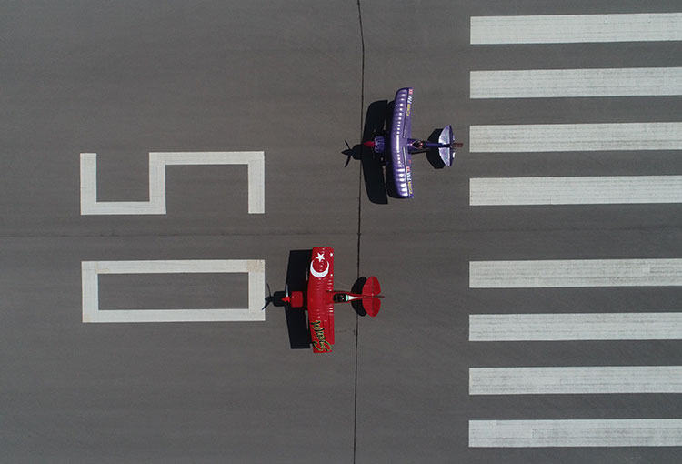 Türkiye'nin ilk profesyonel akrobasi pilotu Ali İsmet Öztürk, "Mor Menekşe" adlı uçağıyla, Türkiye'nin tek sivil kadın akrobasi pilotu kızı Semin Öztürk Şener ise kırmızı renkli "Pitts S2-B" uçağıyla birlikte gösteri uçuşu yaptı.