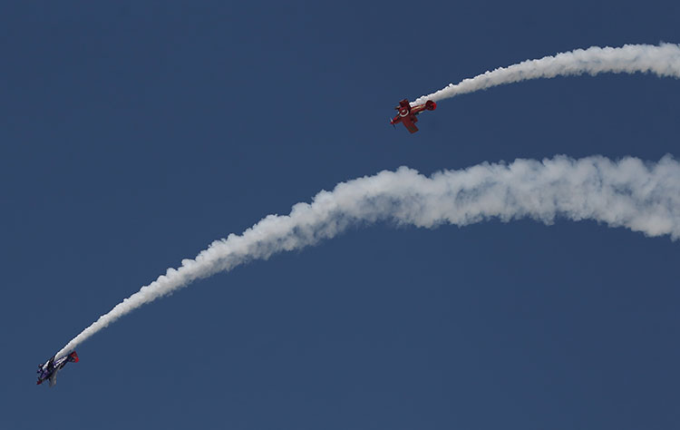 Türkiye'nin ilk profesyonel akrobasi pilotu Ali İsmet Öztürk, "Mor Menekşe" adlı uçağıyla, Türkiye'nin tek sivil kadın akrobasi pilotu kızı Semin Öztürk Şener ise kırmızı renkli "Pitts S2-B" uçağıyla birlikte gösteri uçuşu yaptı.