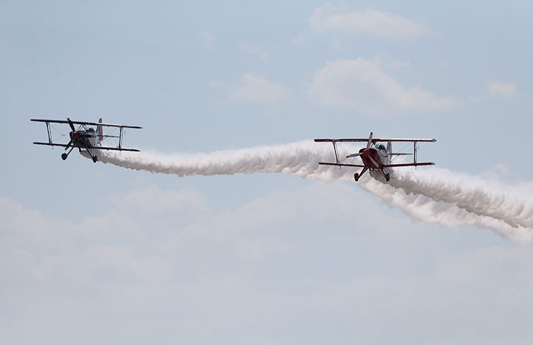 Türkiye'nin ilk profesyonel akrobasi pilotu Ali İsmet Öztürk, "Mor Menekşe" adlı uçağıyla, Türkiye'nin tek sivil kadın akrobasi pilotu kızı Semin Öztürk Şener ise kırmızı renkli "Pitts S2-B" uçağıyla birlikte gösteri uçuşu yaptı.
