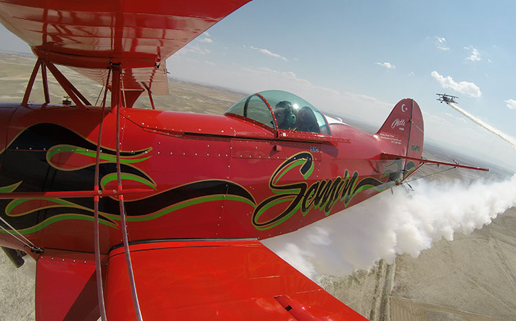 Türkiye'nin ilk profesyonel akrobasi pilotu Ali İsmet Öztürk, "Mor Menekşe" adlı uçağıyla, Türkiye'nin tek sivil kadın akrobasi pilotu kızı Semin Öztürk Şener ise kırmızı renkli "Pitts S2-B" uçağıyla birlikte gösteri uçuşu yaptı.