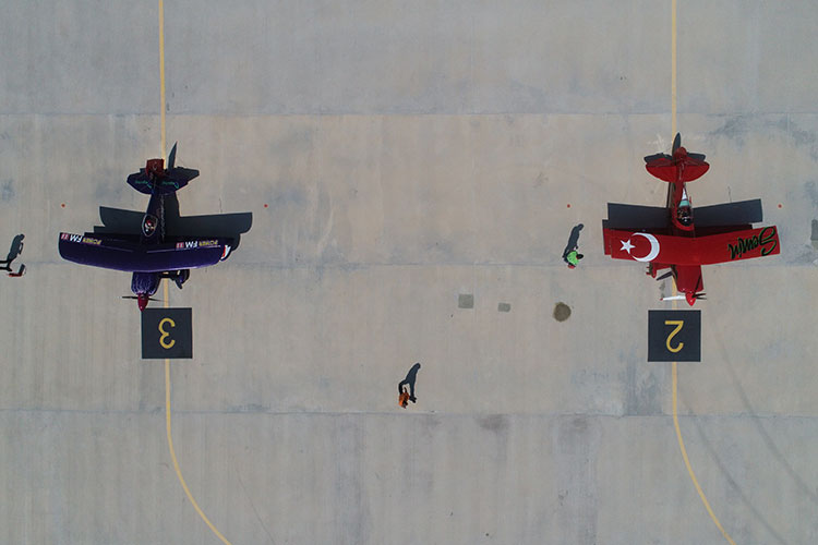 Türkiye'nin ilk profesyonel akrobasi pilotu Ali İsmet Öztürk, "Mor Menekşe" adlı uçağıyla, Türkiye'nin tek sivil kadın akrobasi pilotu kızı Semin Öztürk Şener ise kırmızı renkli "Pitts S2-B" uçağıyla birlikte gösteri uçuşu yaptı.